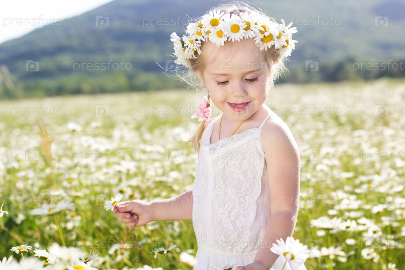 Маленькая девочка с венком из ромашки