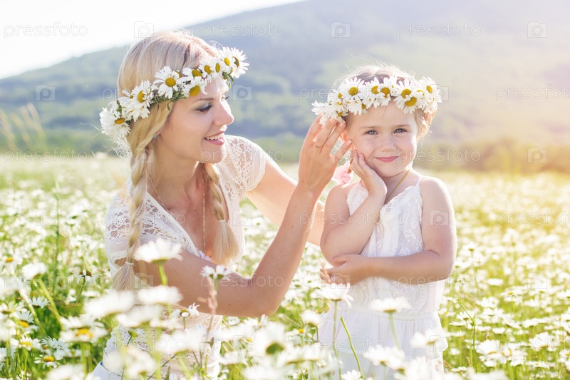 Мать и дочь на ромашковом поле