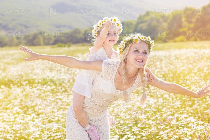 Мать и дочь на ромашковом поле