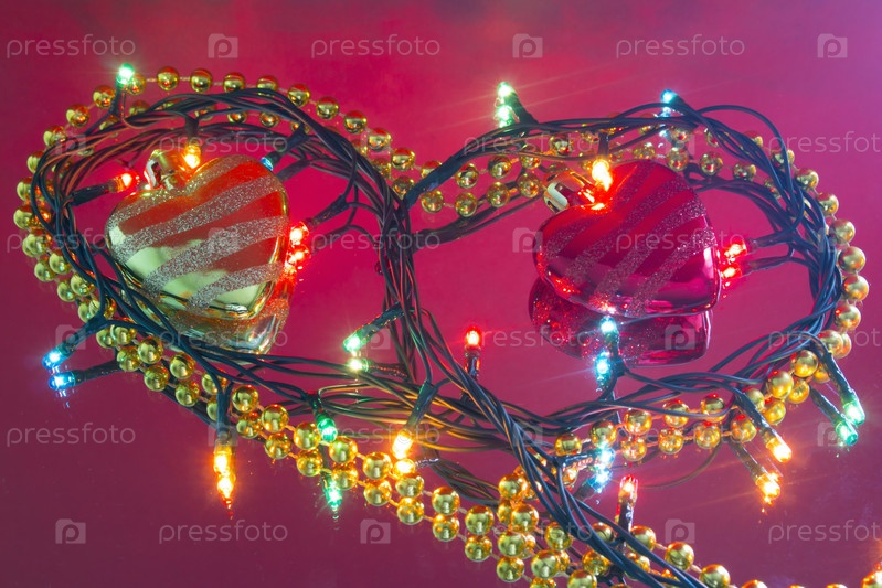 Гирлянда в форме сердца с елочными игрушками