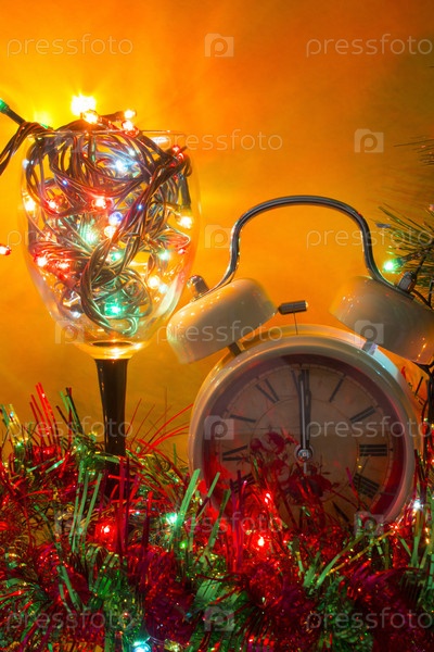 Бокал с гирляндой на желтом фоне