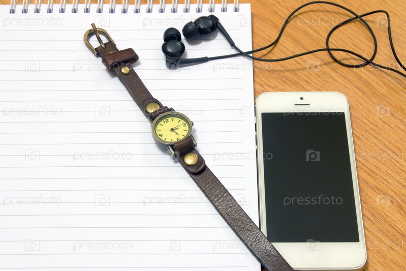 Телефон и наушники на блокноте