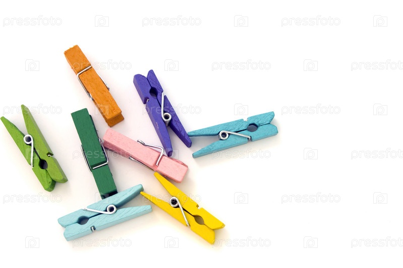 Цветные льняные прищепки, на белом фоне