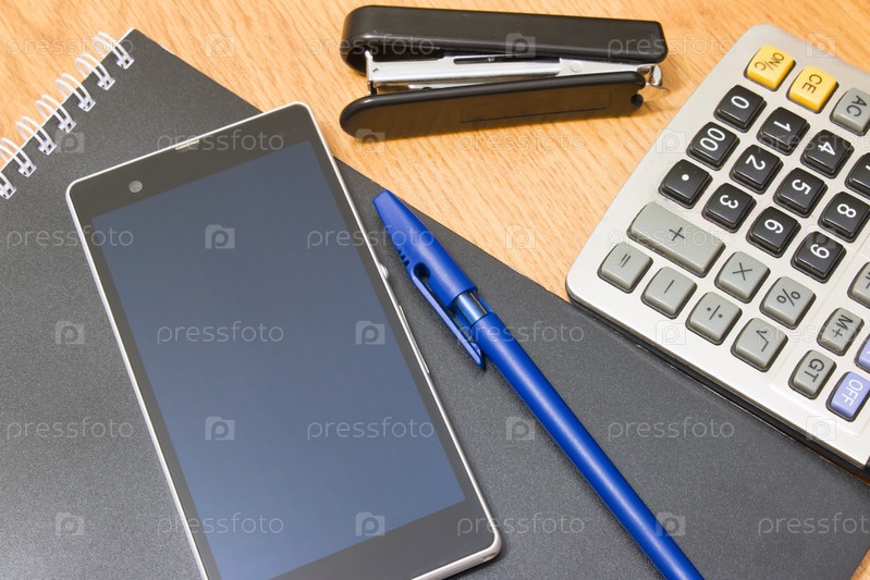 Калькулятор и телефон на столе