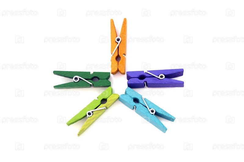 Цветные прищепки на белом фоне