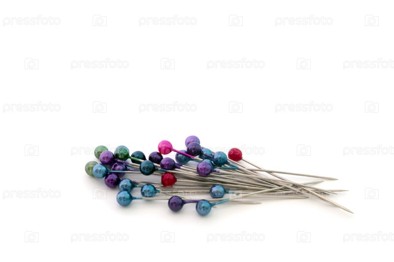 Несколько цветных булавок, на белом фоне