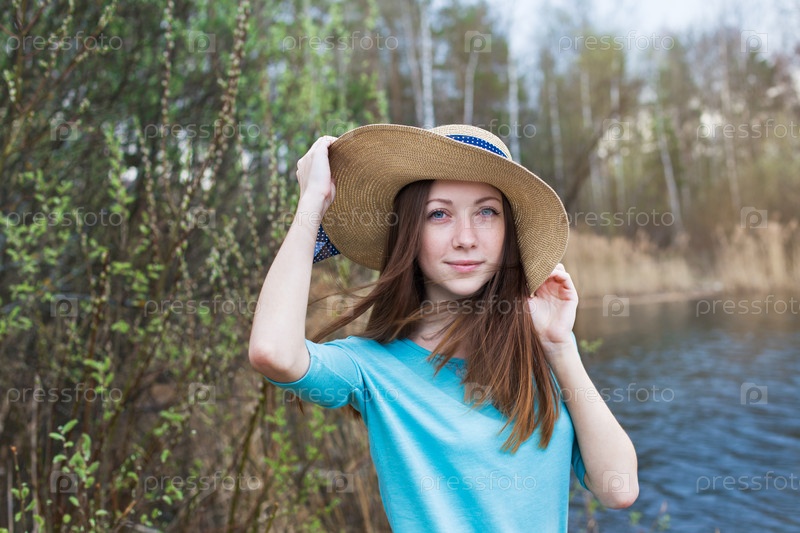 Девушка в шляпе на озере