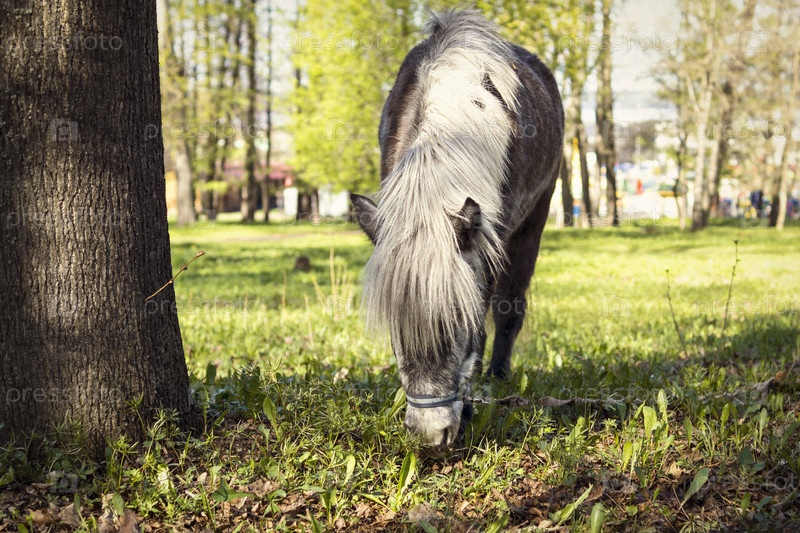 Пони щиплет траву