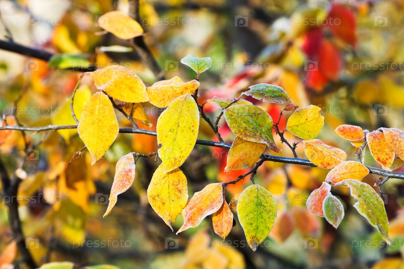Иней на листьях осенью