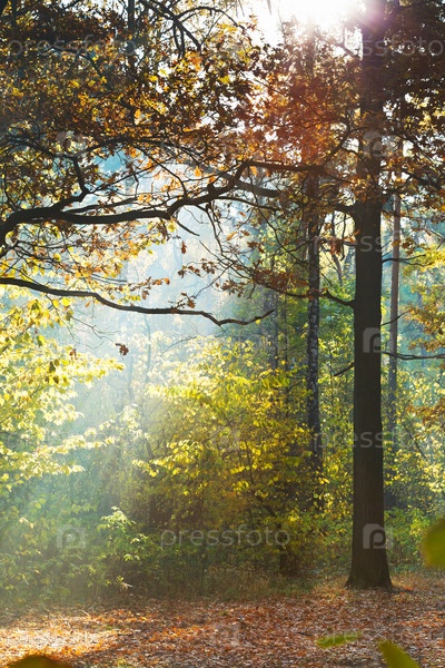 Лучи солнца в осеннем лесу
