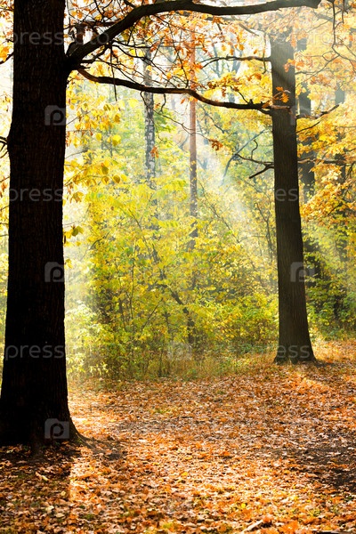 Лучи солнца в осеннем лесу