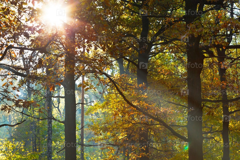 Лучи солнца в осеннем лесу