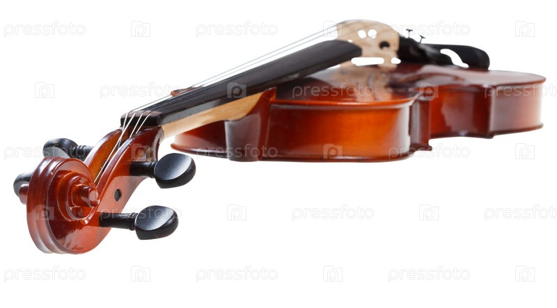 Деревянная скрипка, на белом фоне