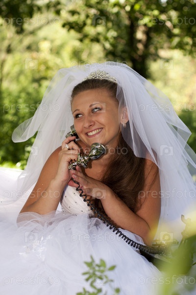 Радостная невеста звонит по старому телефону