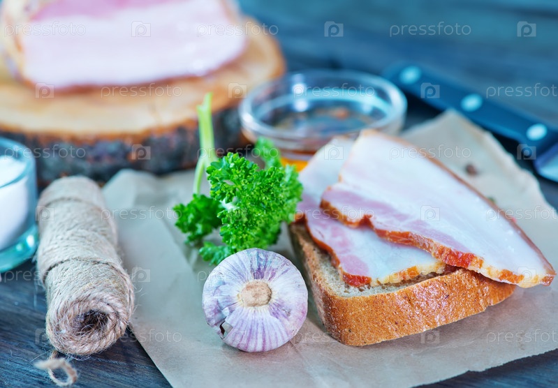 Копченое сало с хлебом