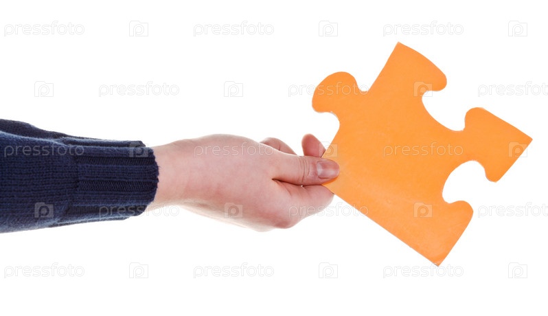 Рука с куском паззла