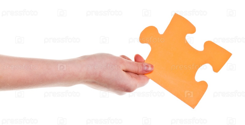 Рука с куском паззла