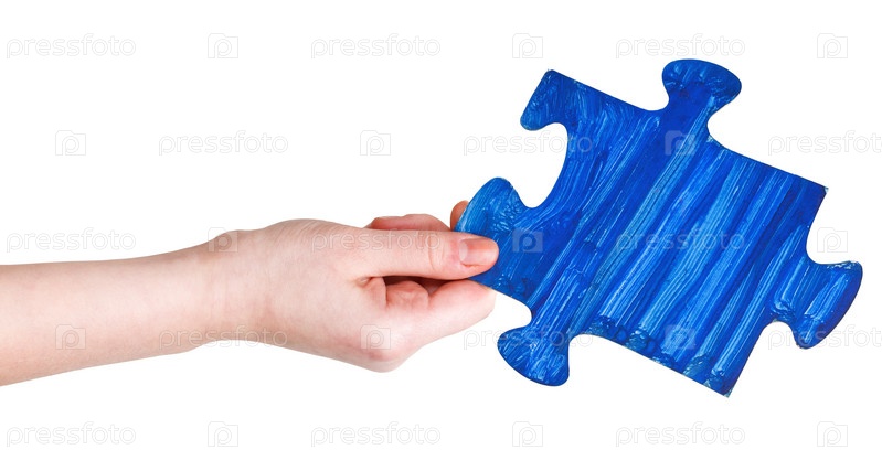 Рука с куском паззла