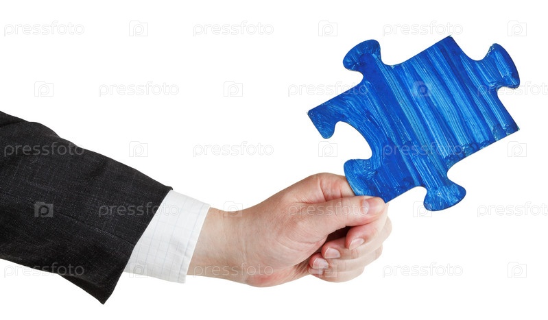 Мужская рука с куском паззла