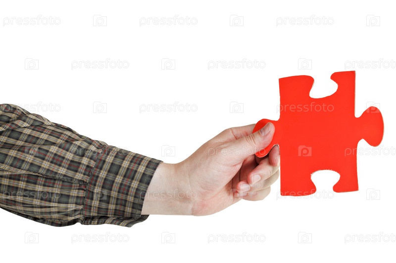 Мужская рука с куском паззла