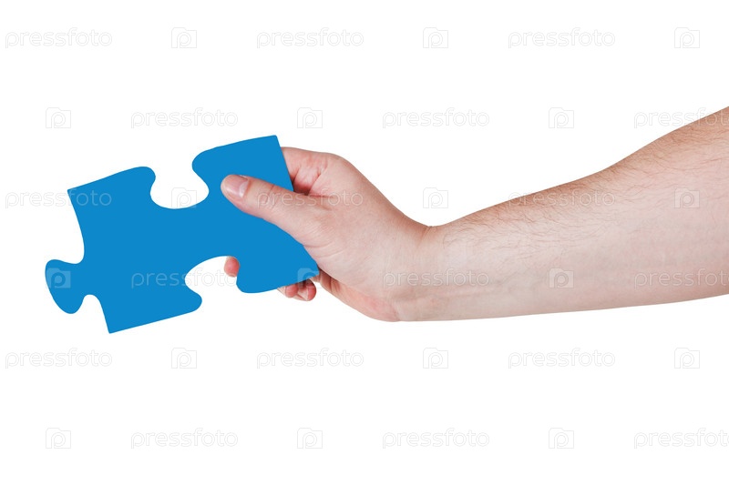Мужская рука с куском паззла