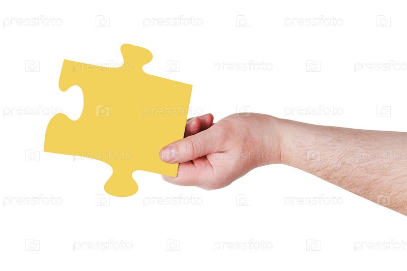Мужская рука с куском паззла
