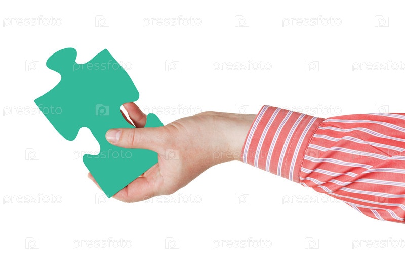 Мужская рука с куском паззла