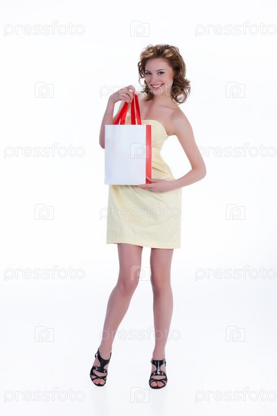Молодая женщина с бумажным мешком