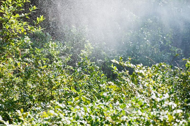 Дождь в саду в солнечный осенний день