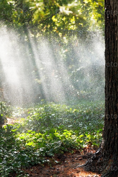 Дождь в лесу в солнечный осенний день