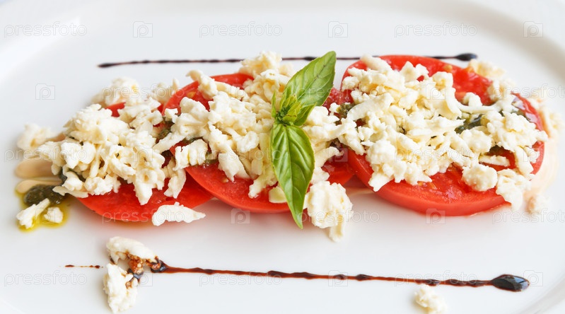 Нарезанные помидоры с брынзой