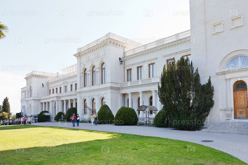 Туристы у большого дворца в Ливадии в Крыму