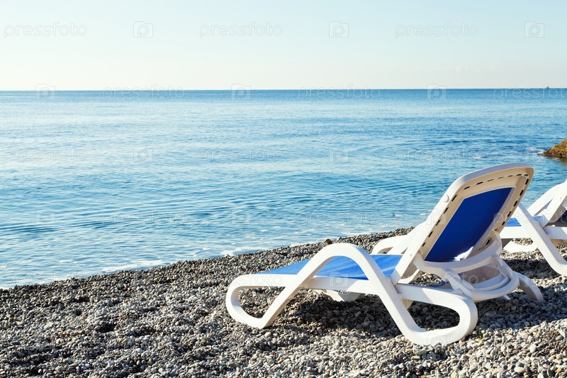 Стулья на городской галечном пляже в Ялте
