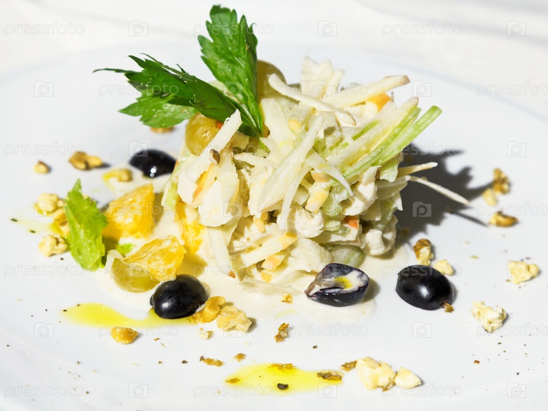 Салат из сельдерея яблока, апельсина