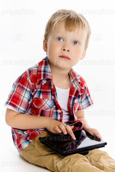 Мальчик с планшетным ПК. Студия