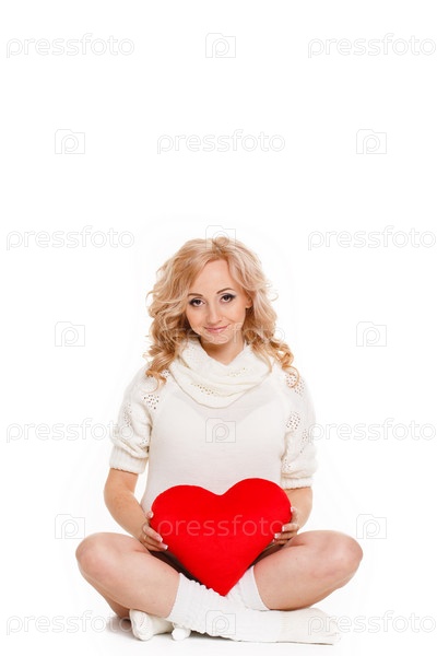 Портрет беременной женщины с плюшевым сердцем