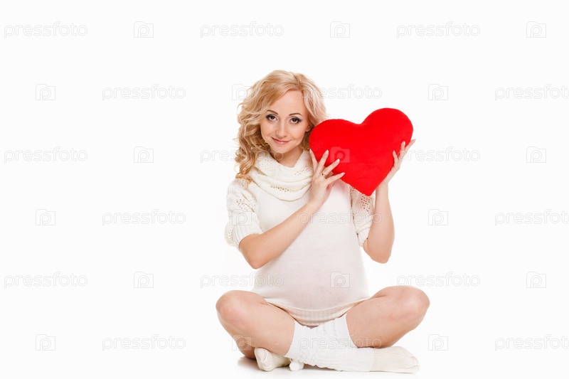 Портрет беременной женщины с плюшевым сердцем
