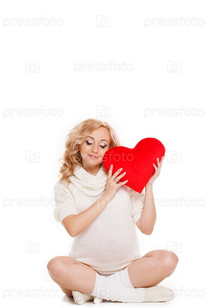 Портрет беременной женщины с плюшевым сердцем