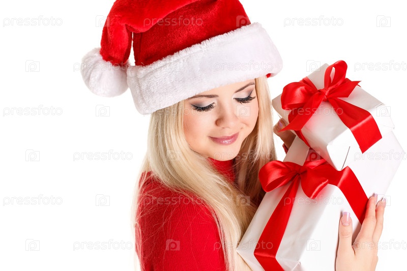 Девушка в колпаке Санты с подарками