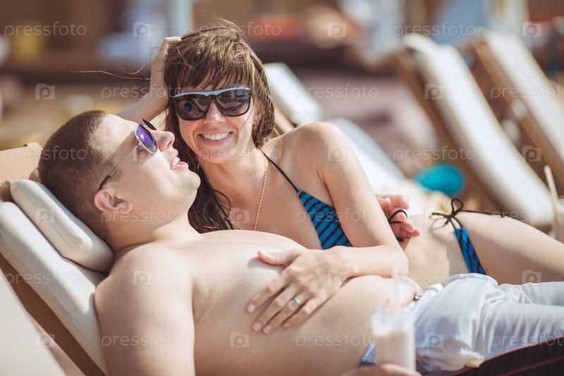 Двое загорают на шезлонгах