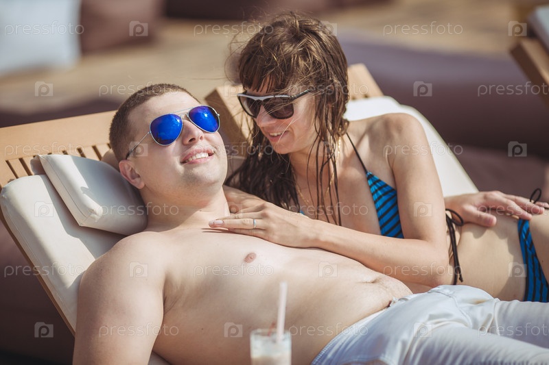 Двое загорают на шезлонгах