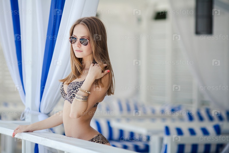 Девушка в купальнике в беседке