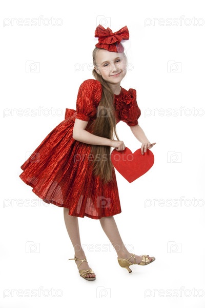 Девочка в красном платье с сердечком в руках