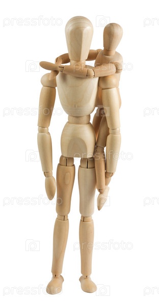 Маленький деревянный человечек на спине у большого