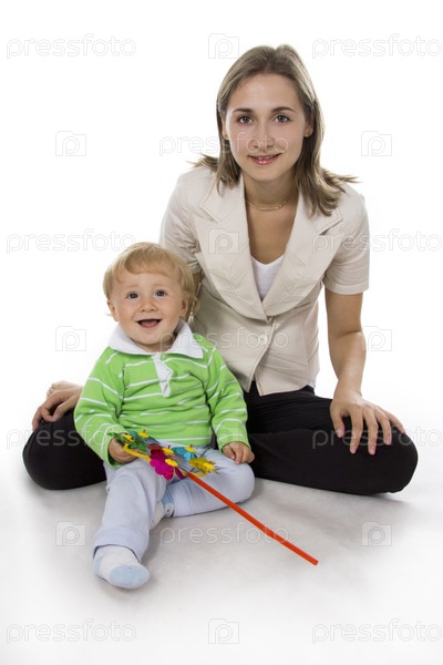 Мама с маленьким сыном, изолированы на белом
