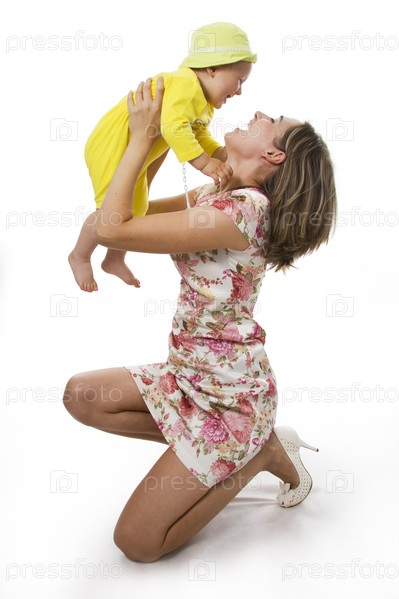 Мама с маленьким сыном, изолированы на белом