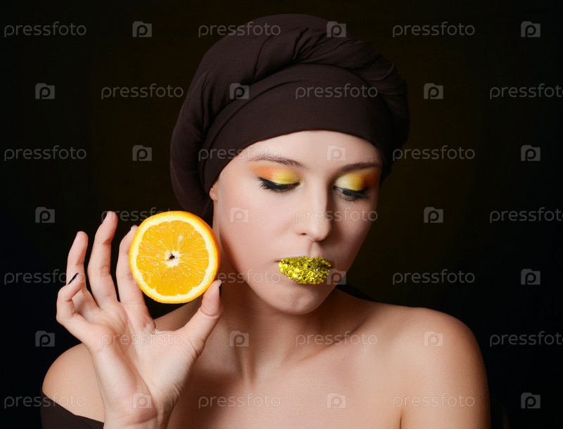 Красивая девушка с апельсином
