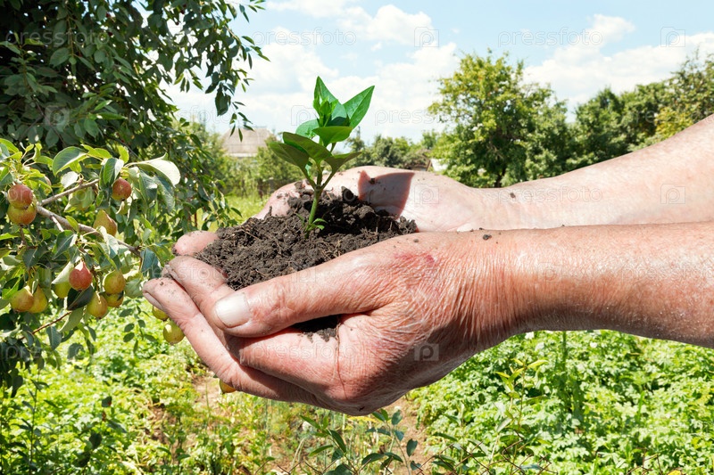 Горсть почвы с ростком