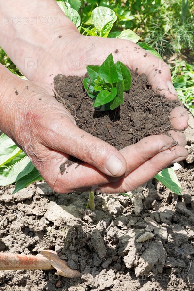 Горсть почвы с ростком