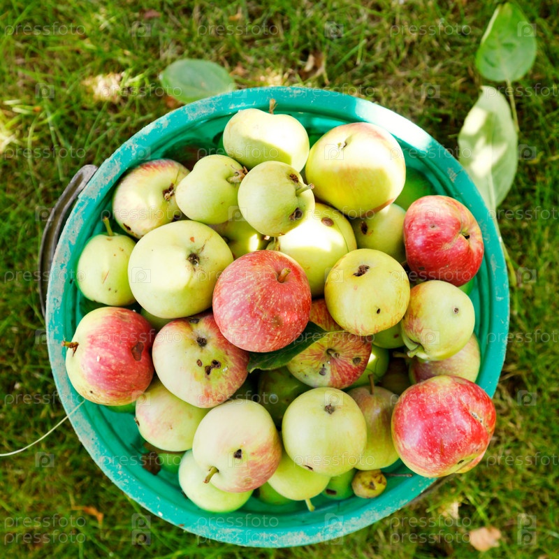 Ведро с спелых яблок